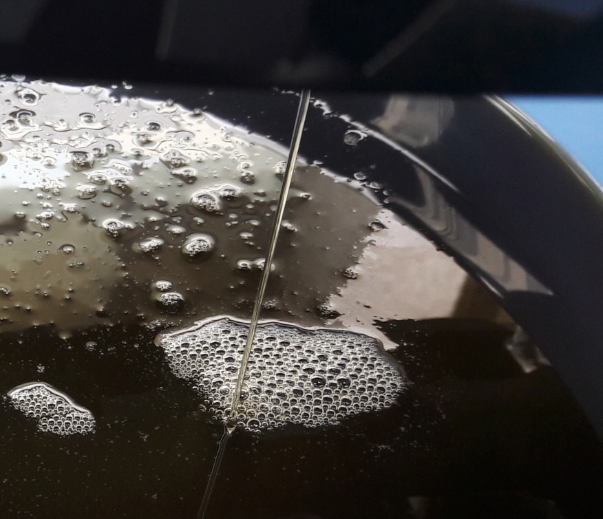 새 플라스틱 세숫대야에 흘린 오일을 옮긴건데.. 그 사이 많은 침전물이 있네요...