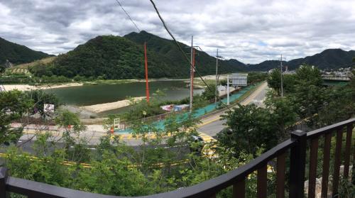 고갯길 정상에 '수원산 전망대'입니다.
