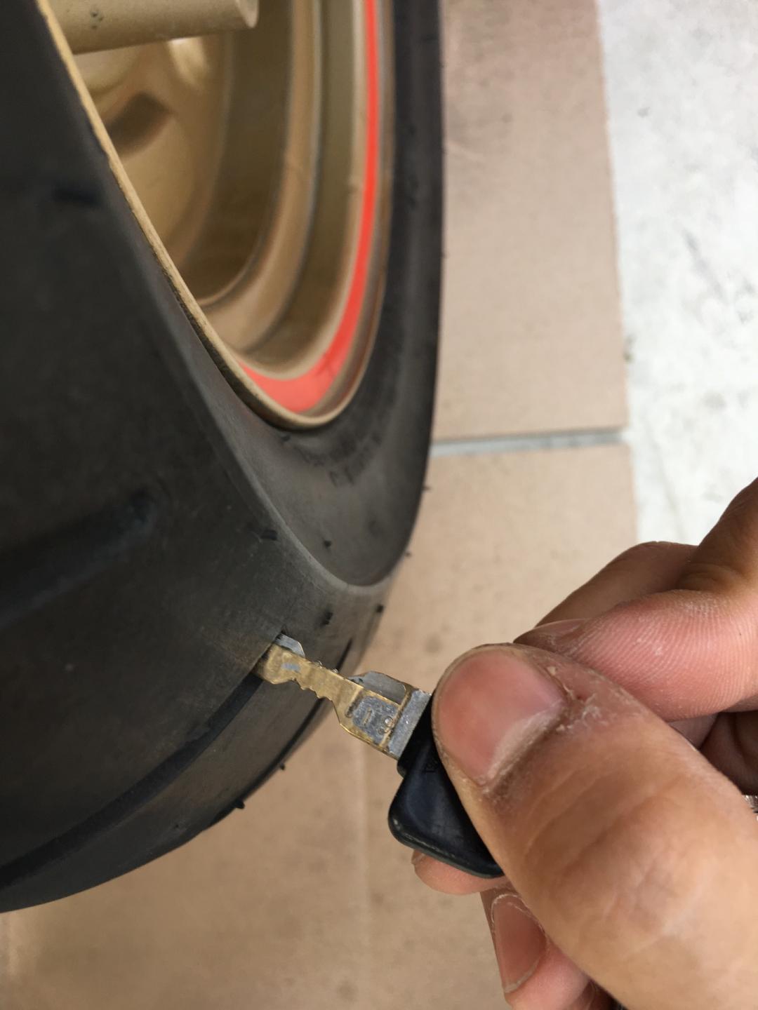 엊그제 비를 많이 맞아서 루브칠하면서 타이어를 돌리는데 루브루브하면서 잠시 시선을 돌리니 타이어가 보이네요