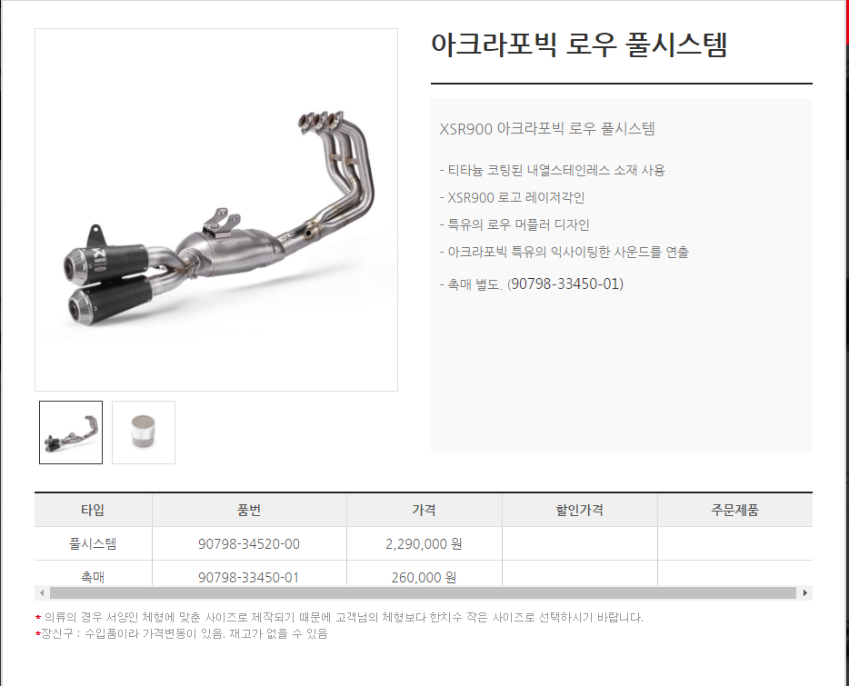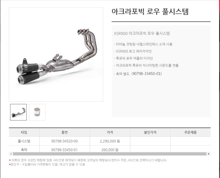 두카티 스크램에 아크라 하프 시스탬이 200만원짜리 거든요.