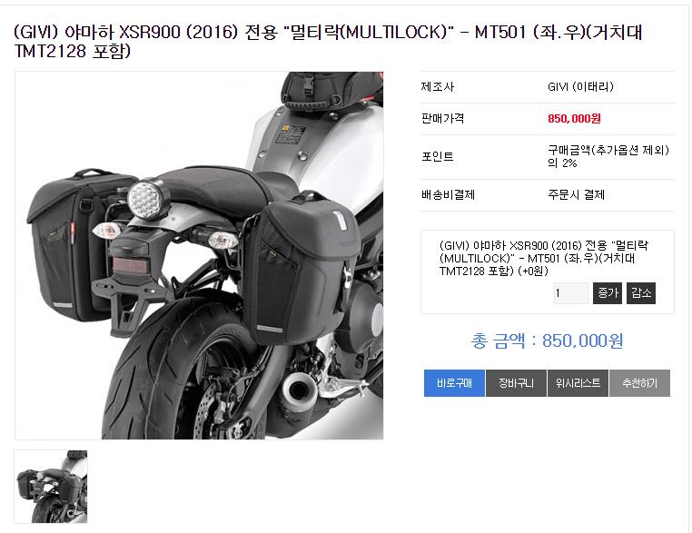 가방은 좋습니다.. 하드하고 ㅋㅋ xsr은 더블로 다는군요 저는 참고로 이베이에서 구매함...