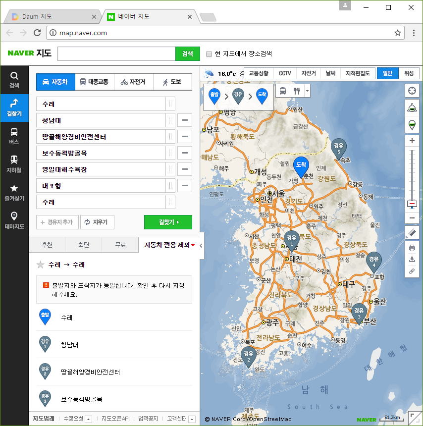 분명 육로로 이어진 경로인데 안내를 못합니다 ㅡㅡ...