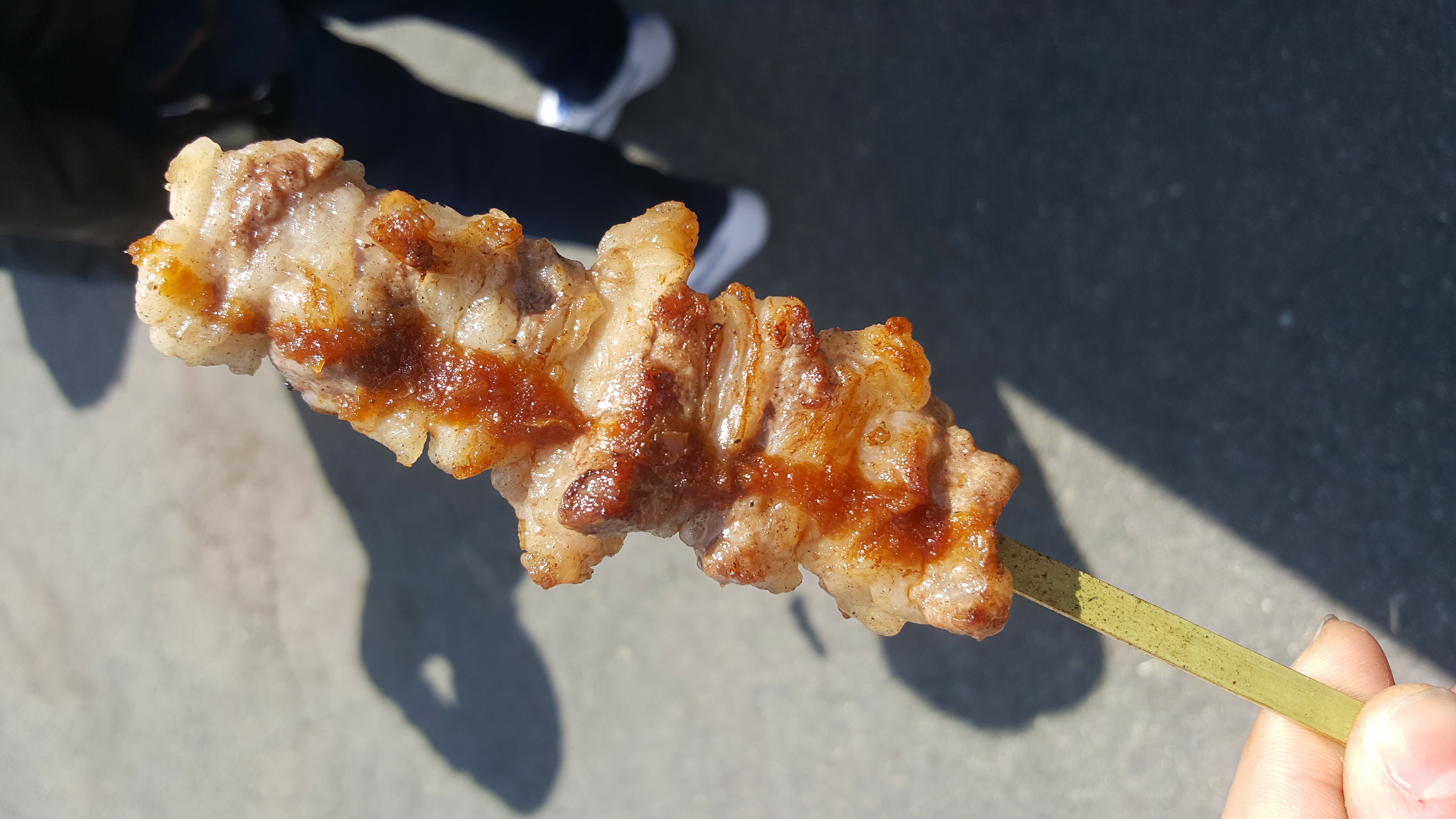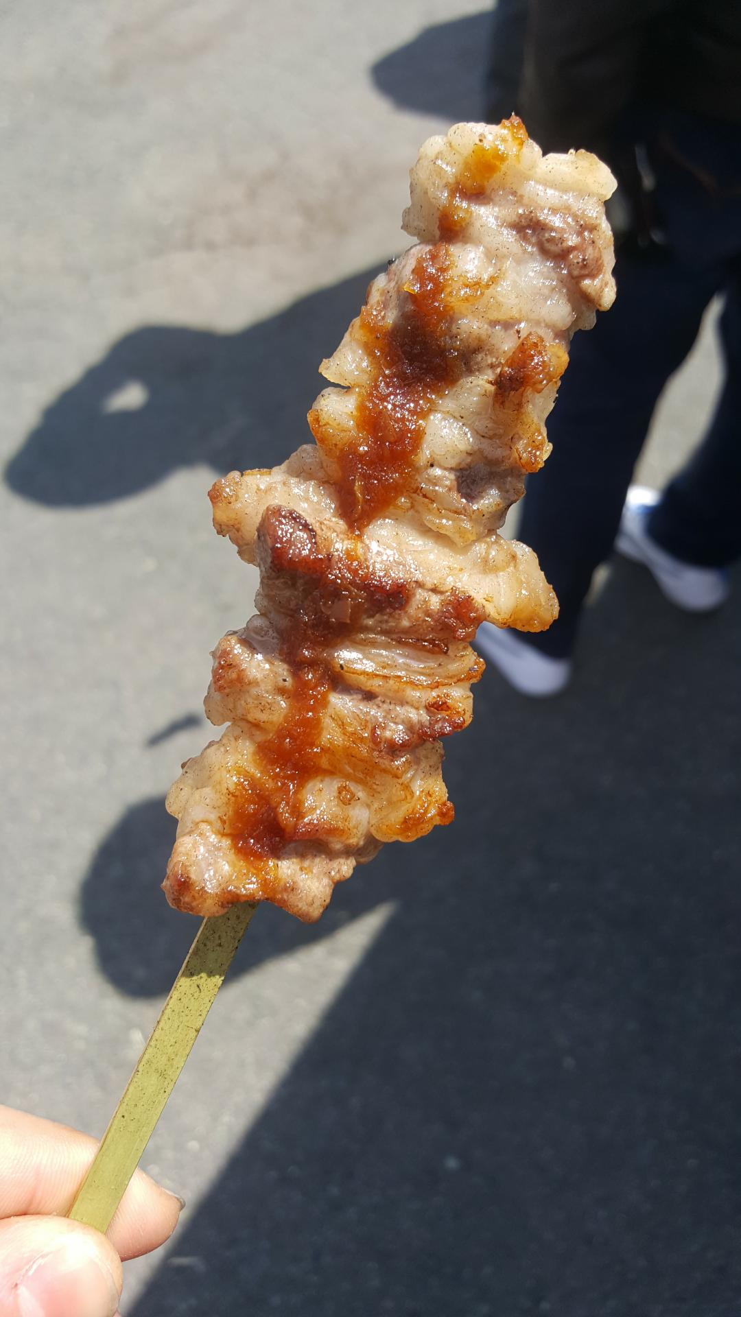 정상에서 찍은 사진인데 저희말고 일본분들도 많이 오시더라구요 한팀이었는데 대략 15분정도 되어보였습니다. ㅎㅎ 그외에도 솔로라이더도 많으시고.. 나이드신 백발할아버지가 가죽슈트에 부츠신으시고 레플리카타는 것도 재밌었습니다 ㅎㅎ 정상에서 먹은 소고기꼬치?였는데 맛있었습니다. 가격은 500엔 한화 약 5천원 ㄷㄷ 저거먹고 출발~