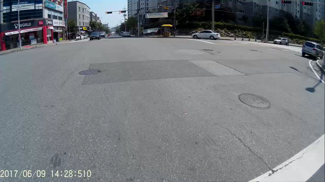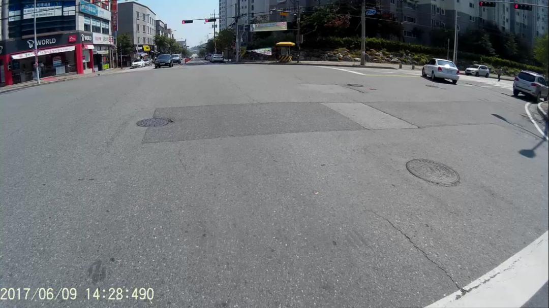 오른쪽에 보행자가 있었고(이 보행자도 신호위반 무단횡단) 신호는 3시에서9시 방향 초록불!
