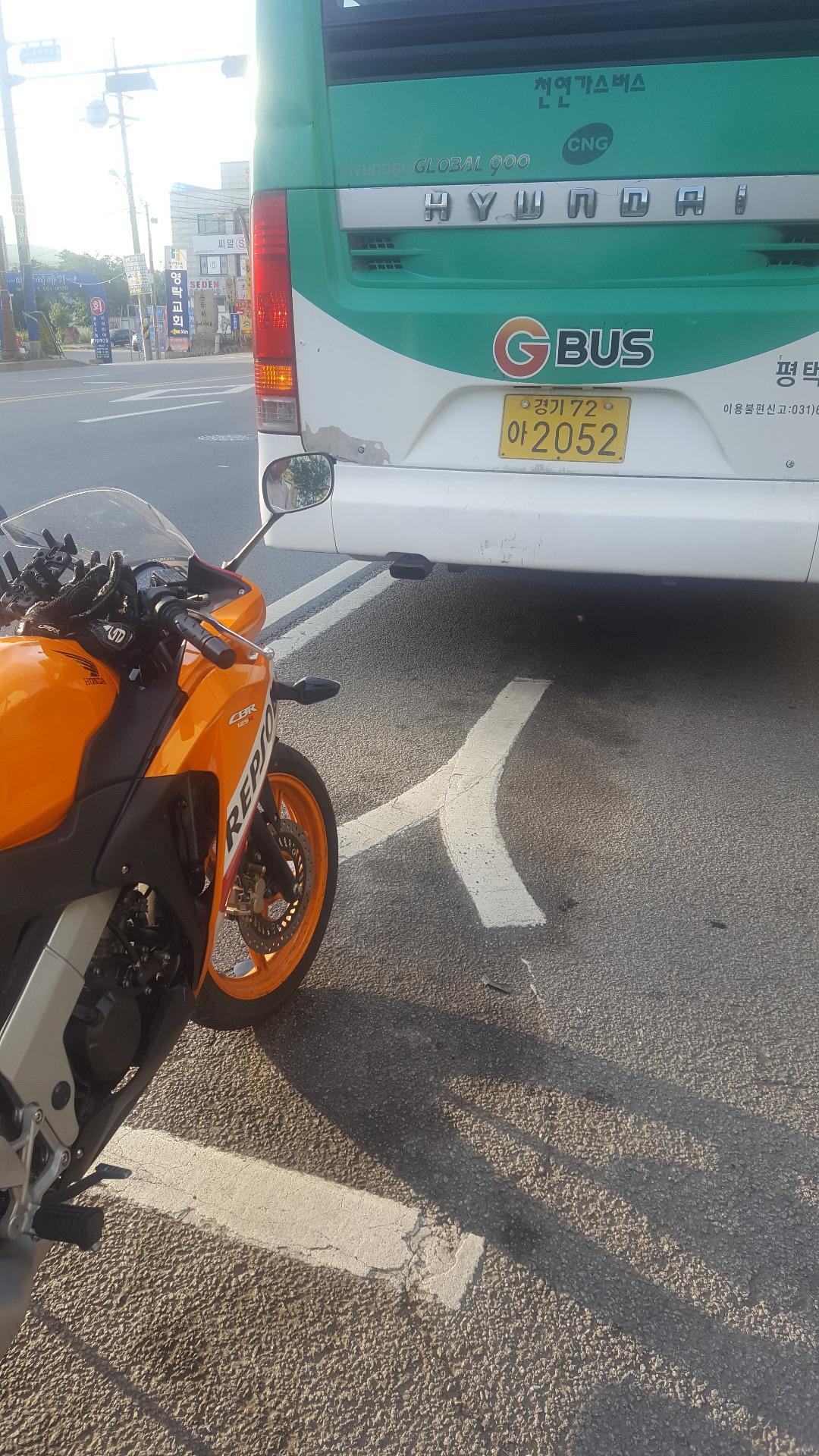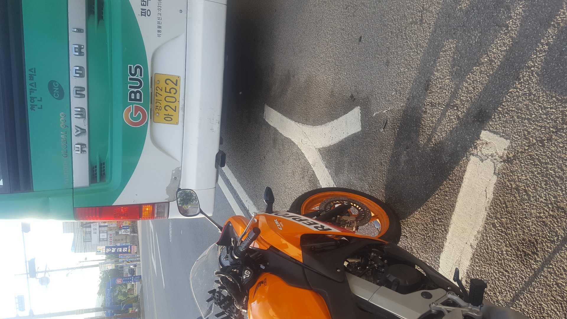 버스가 갑자기 후진을 해가지고 바이크가 낀상태로