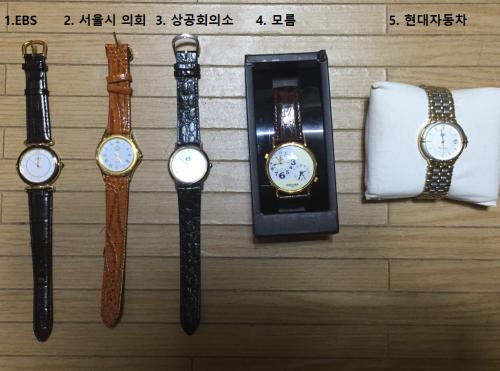 아주 싸구려는 아니고 보통 대기업체, 단체에서 사은품으로 주는 시계들 입니다.