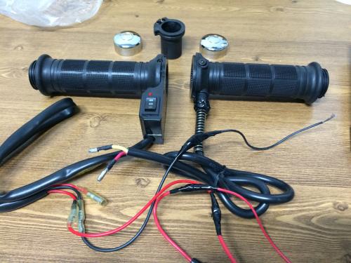 나눔 물품은 열선그립입니다. 그냥 듣보잡 열선그립인데요 없는 것보단 있는게 낫지 않을까 싶어요. 다만 신형이 아니라 구형 버전이라서 스로틀 독립형이 아니라 우측그립이 배선과 함께 움직입니다. 작동은 배터리 연결해서 켜보니 뜨듯하네요. ^^;