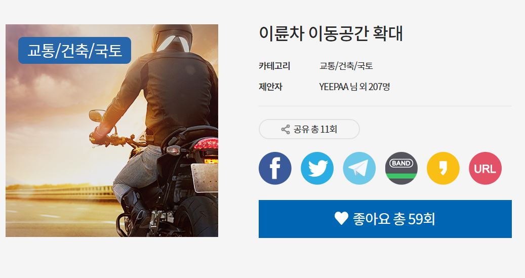 이륜차에 대해서 드디어 정부에서 관심 가질 계기가 생기네요