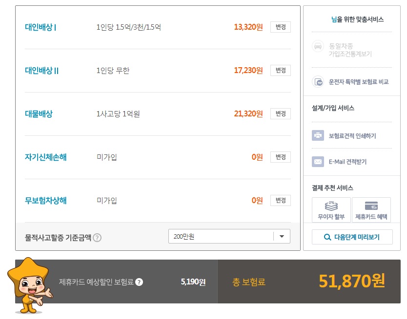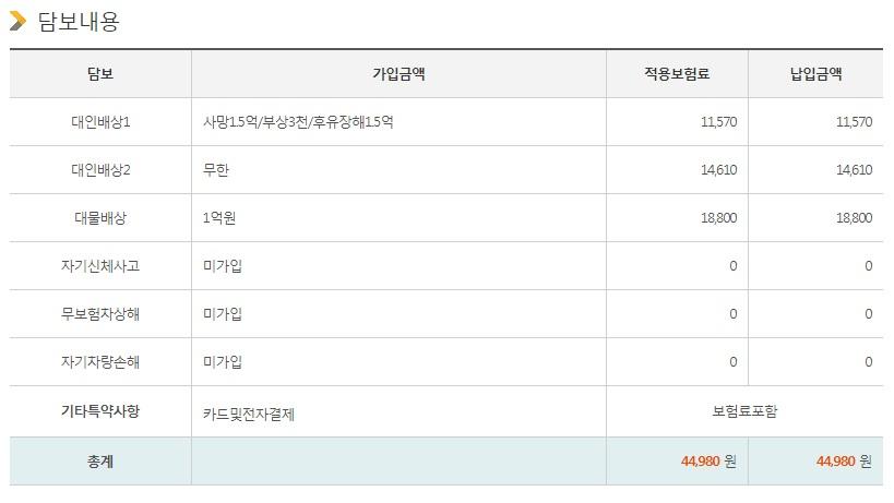 갱신보험료가 51,870원! 오오 저배기량이라 저렴한편이죠!