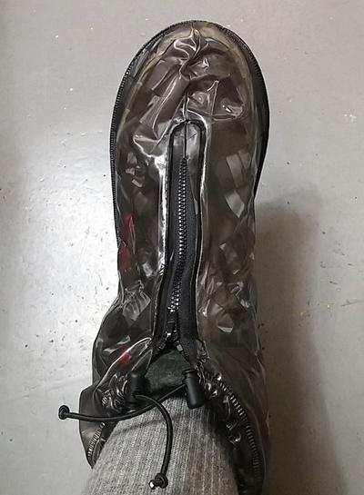 신고 벗기 위해 발등쪽에 지퍼가 있는데 폭우를 만나면 이쪽으로 물이 들어 올 것 같습니다.