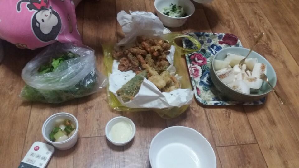 4시쯤 나가서 적당히 달리고 저녁으로 먹을 튀김을 사왔습니다.