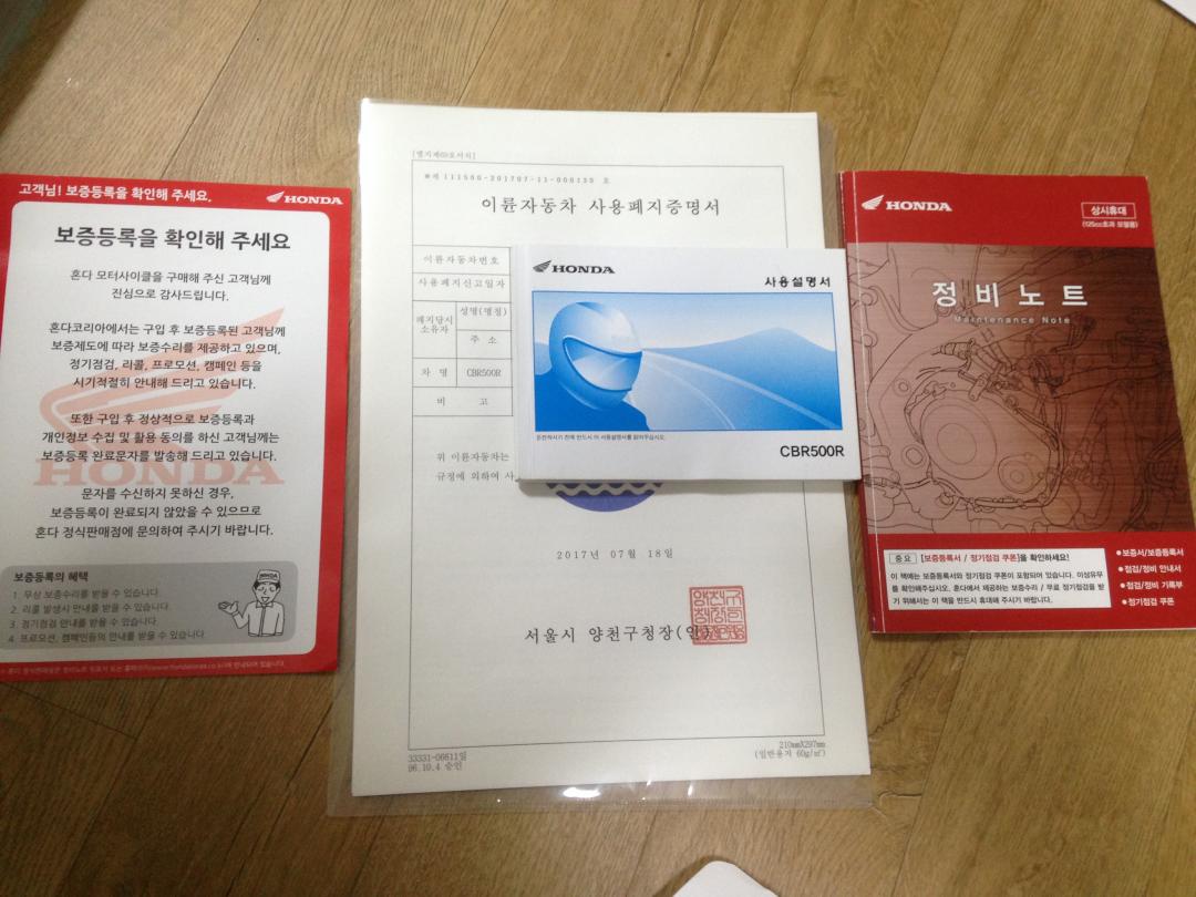 3. 현재 5599km주행, 폐지완료, 구매시 받은 책자 및 보조키(사용안함) 기본공구 모두 있음. 차대에 붙어있던 스티커까지 보관!