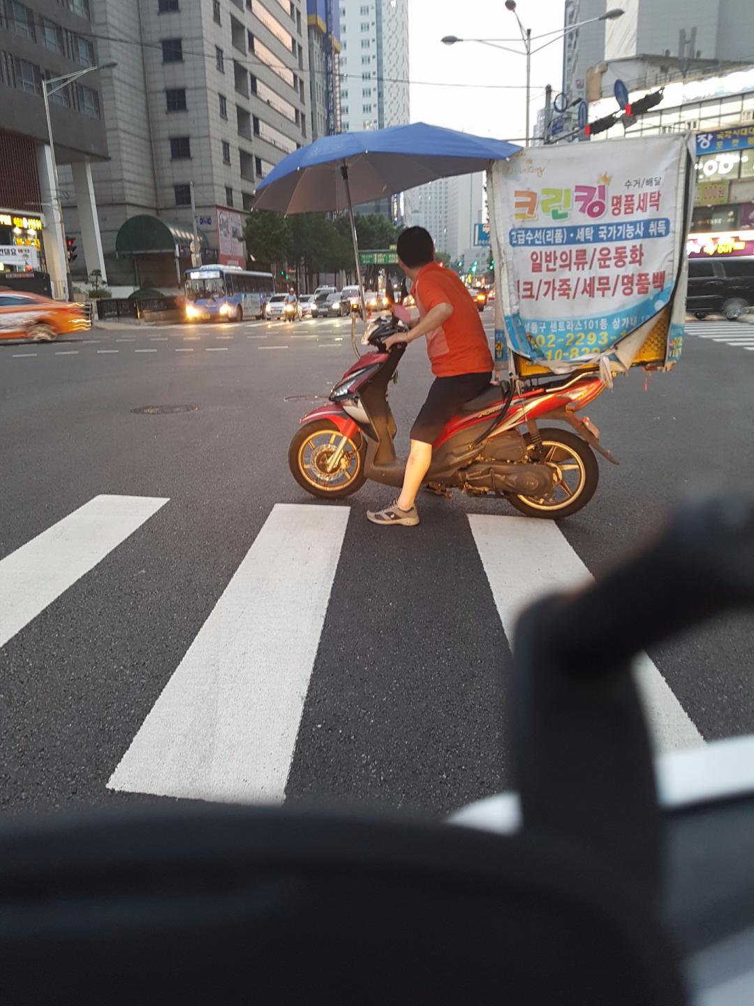 우산? 파라솔 안날라가려나 모르겠네요. 보니까 개조한 것 같은데.. ㅎㅎ 참신하네요