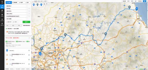 출발-내촌휴게소(휴식)-팜파스휴게소(휴식,주유, 여기서 음료수 사가야 미시령 옛길에서 마실수있음)