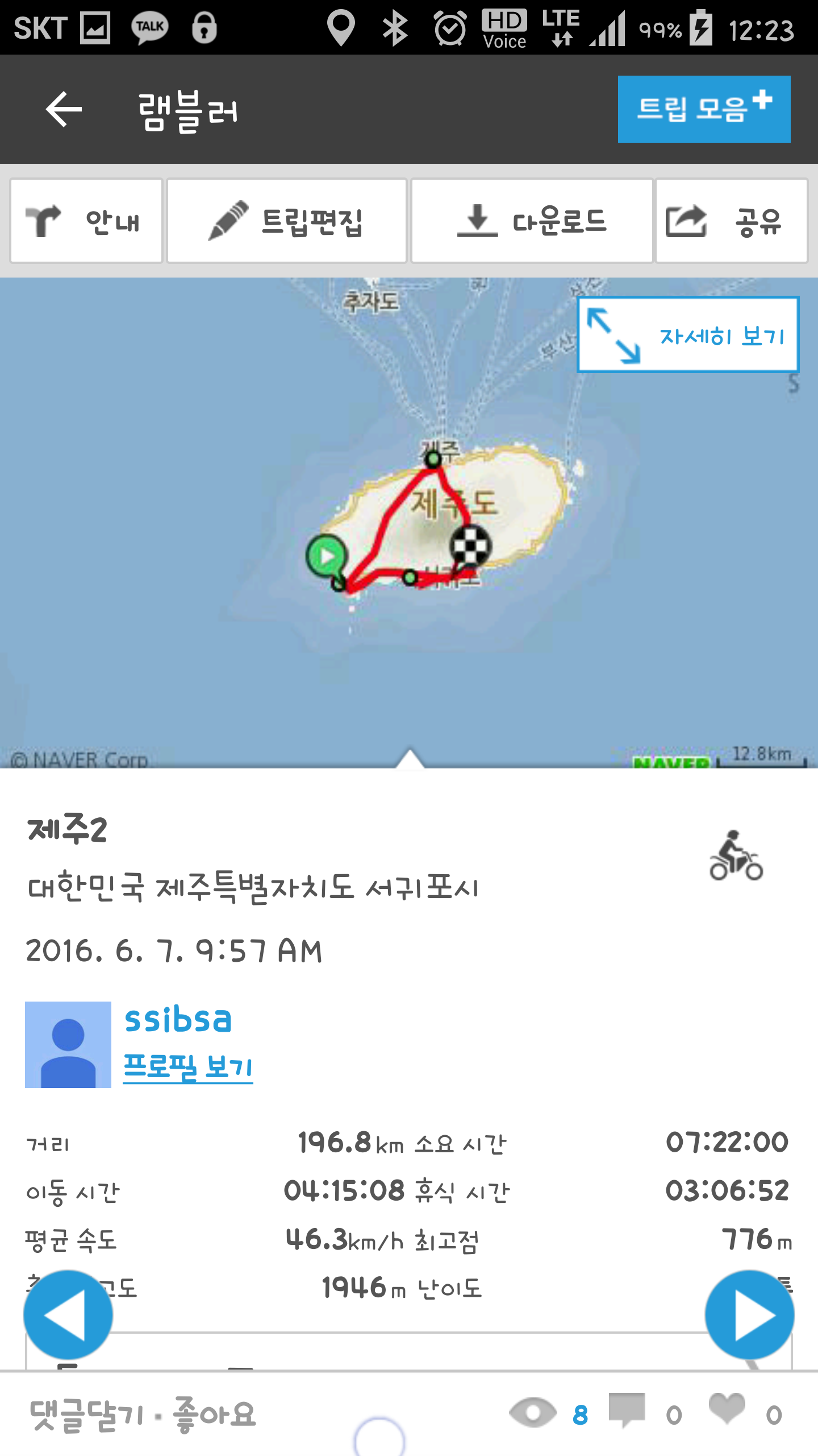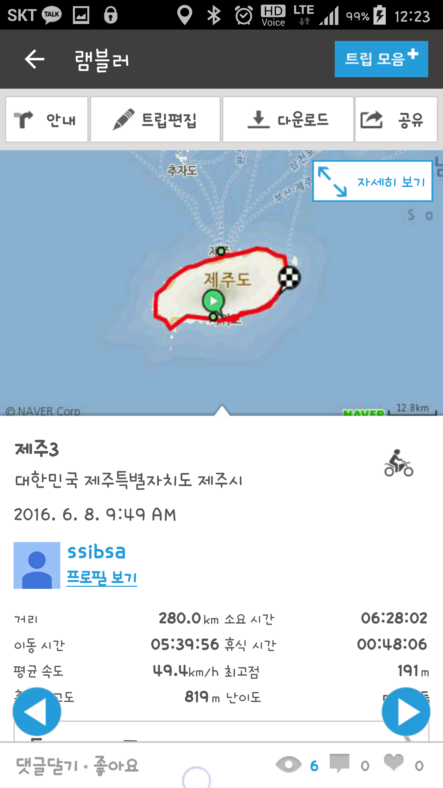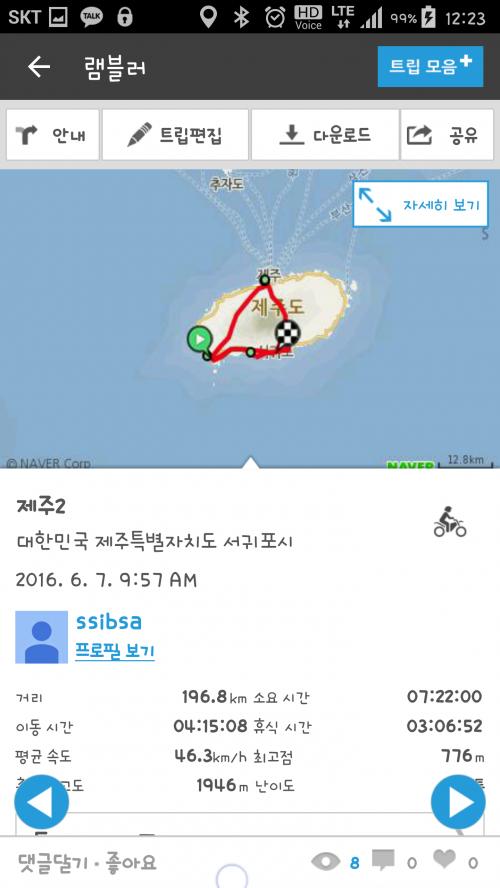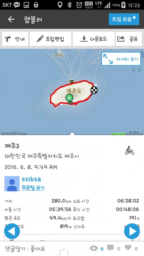 집에서 완도까지 왕복과 제주도 안에서 탔던거 합치면 휴가 1주일동안에 2000km를 넘게탔으니
