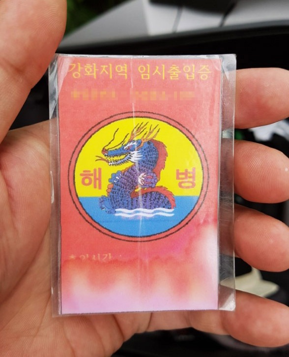 이 출입증을 교동대교 직전의 검문소에서 보여주면 출입이 가능합니다.