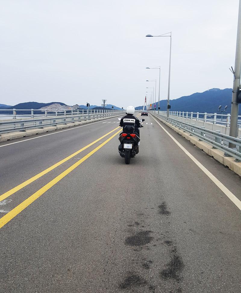 오도바이로 슬금슬금 내려갔다가 유턴하는데 뒷바퀴 슬립나서