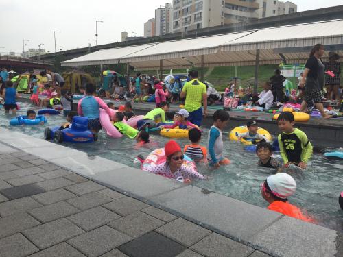 광명시에서 운영하는 안양천 옆 물놀이장입니다.