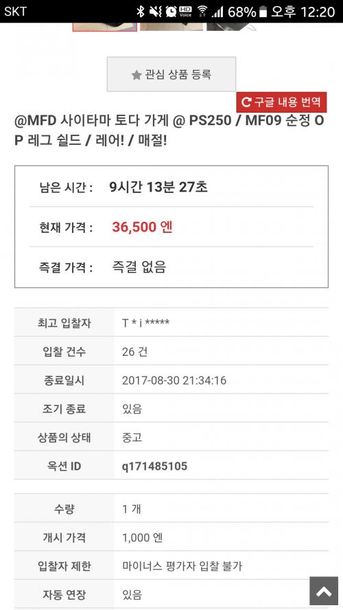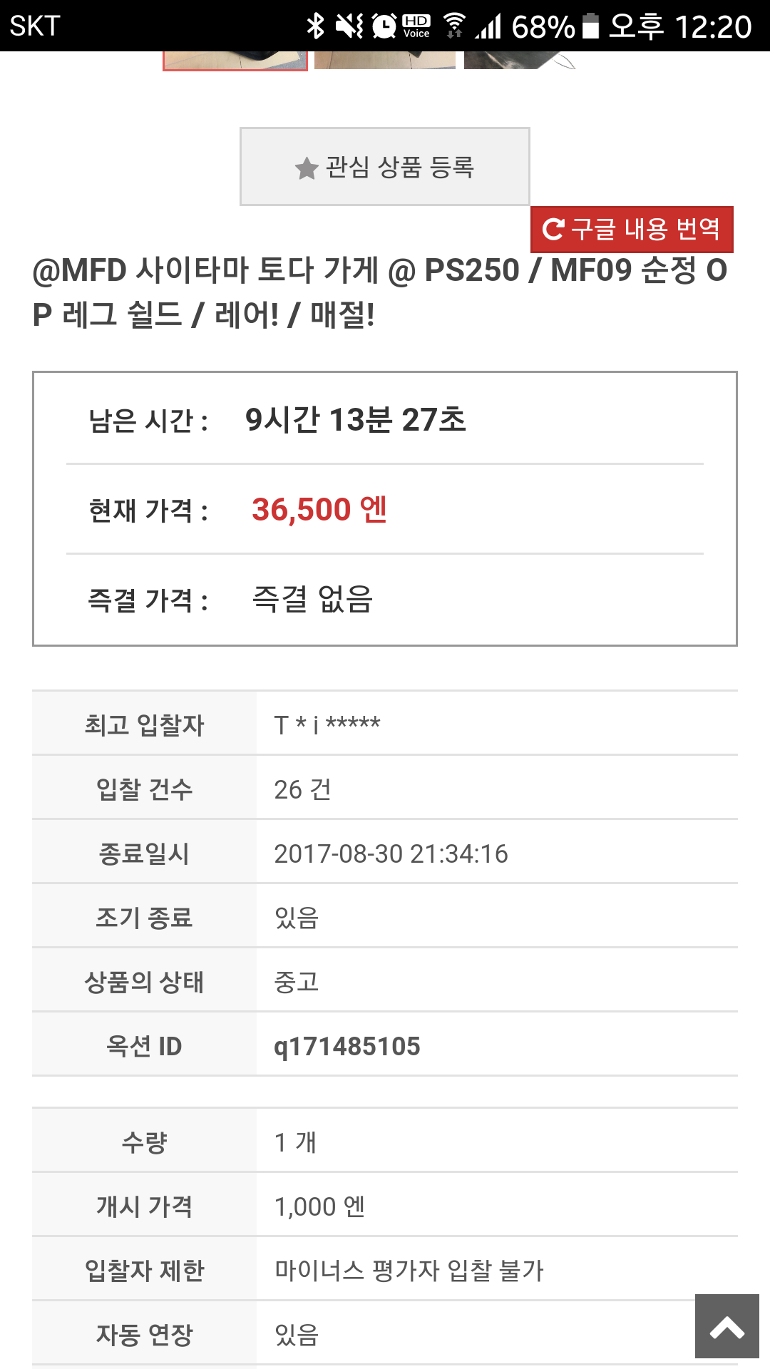 현재 3만6천엔이 넘어갑니다 경매9시간남았는데