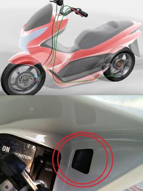 아래 샷의 붉은 원, 키박스옆에 위치한 홀 부분은 CBS 기능을 위한 앞브레이크용 두번째 HB액 확인창.
