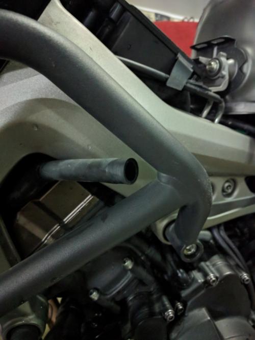 오버플로우 관(?)입니다. 정확한 명칭인지는 모르겠으나 쉽게 말해서 엔진오일 넘치면 넘어오는 관입니다.