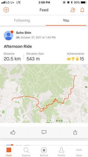 앱에 들어가면 이렇게 스트라바가 기록한 자료를 선택할 수 있습니다.