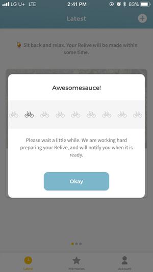 이어서 Relive 앱 스탭들이 직접 영상을 제작하고, 제작이 완료되면 앱을 통해 완료되었음을 알려줍니다!
