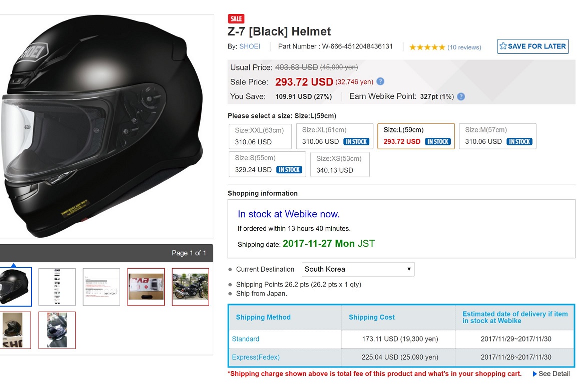 z-7 헬멧을 위바이크를 통해서 구매하면 아래의 스탄다드 배송비 173달러를 지불해야 하는게 맞나요??