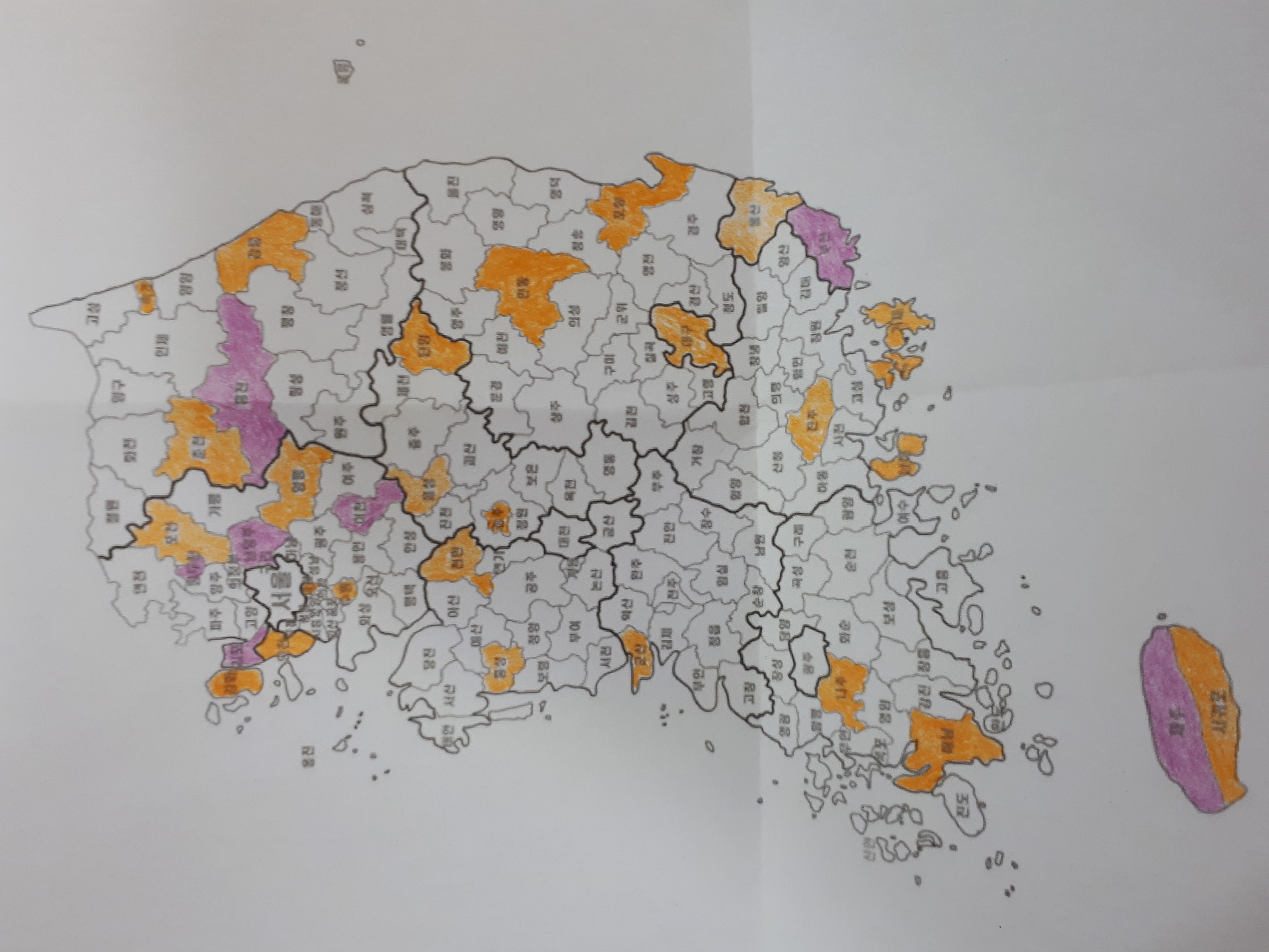 바로 옆에 붙은 지역은 다른 색 칠하기입니다.