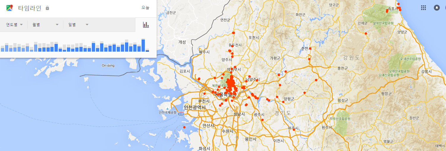 스마트폰 GPS 활성화 시키면 구글아이디로 로그인 되어있으면 이동경로