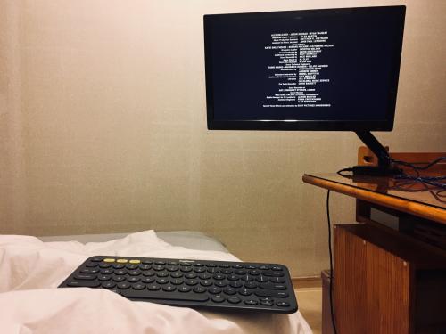 심지어 모니터를 조금 당겨주면 발밑에 제 개인 TV로 변신!.... 러닝타임이 길면서도 생각보다 지루한 영화를 봤음에도 불구하고 중간에 쉬는 시간(이라 적고 구름과자먹는시간이라고 읽음) 없이 엔딩크레딧이 올라가고나서야 이불 밖으로 탈출했다는...