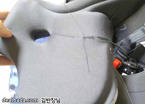 내피의 바느질 부분을 살짝 째서 스피커를 넣고 다시 꿰매는....쓸데없는 작업을 합니다.