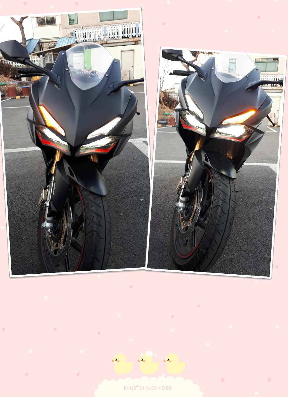포토원더로 만드신 콜라쥬 속 페라리가 고개를 살짝 젖혀 수줍게 윙크하는 모습같아요!