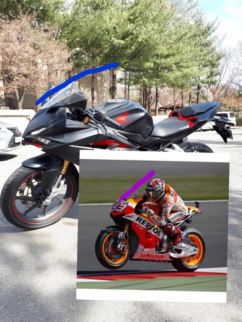 윈드스크린보면 순정이 라인이 딱 떨어져서, 보면 제일 이쁘긴한데. 주행풍에서 자유롭지 못해서요.