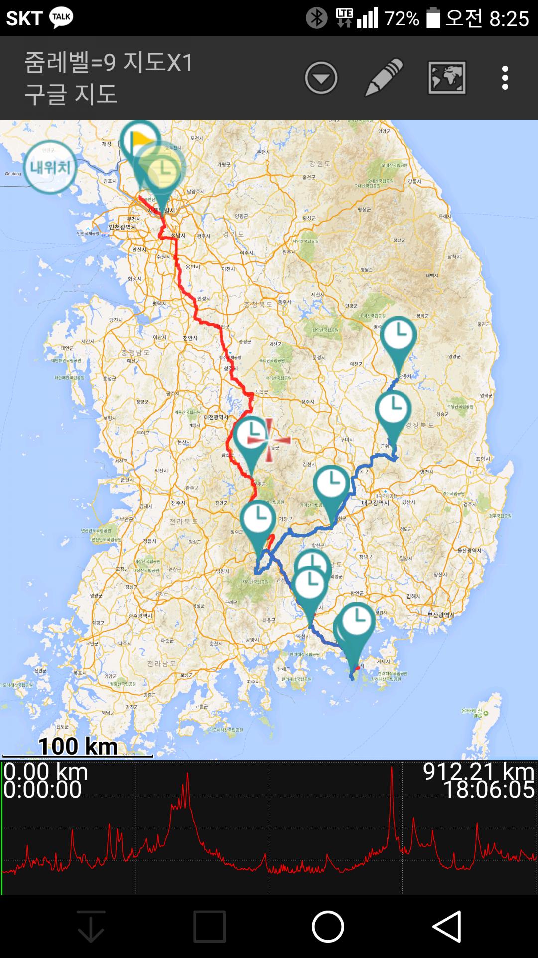 하루에 400키로 조금 넘게탓더라구요...