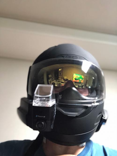 실제부착해서 보면 생각보다 크게는 안느껴집니다. 또한 헬멧쓰면 앞 디스플레이만 보이고 전체크기는 느끼기 어렵습니다. | ||