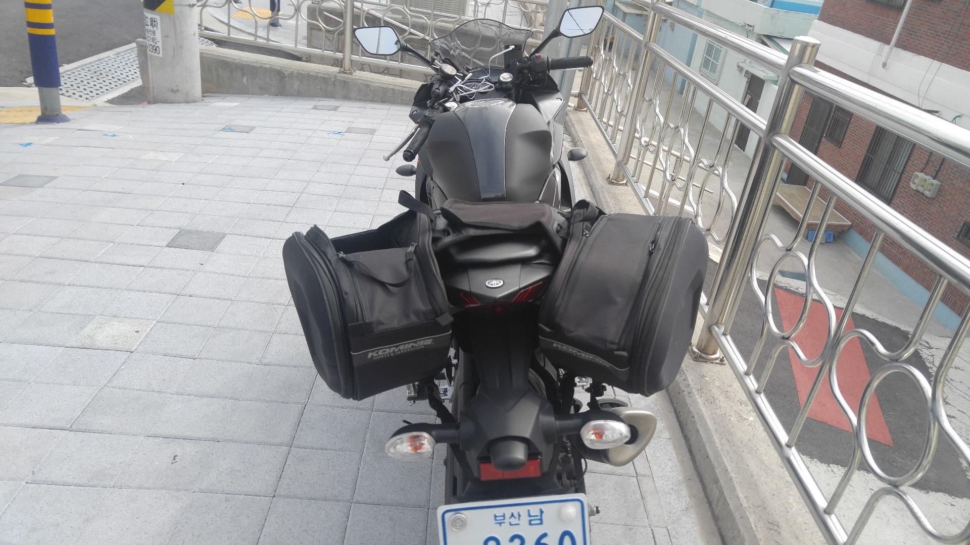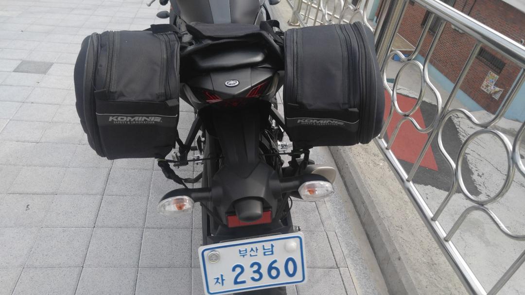 전에 싸게 구매해 놓은 중고 사이드백?을 투어를 위해 장착했어요.