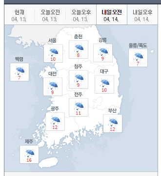 헐 ㅠㅠ 대신 일요일은 화창하네요 |