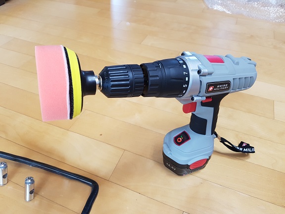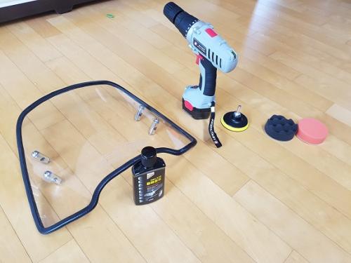 준비물은 숏윈드스크린 , 폴리싱패드, 가정용 전동드라이버, 미세흠집컴파운드