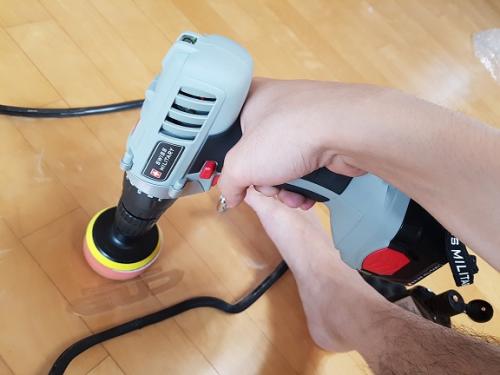 전동드라이버에 천방짜리 패드를끼웁니다