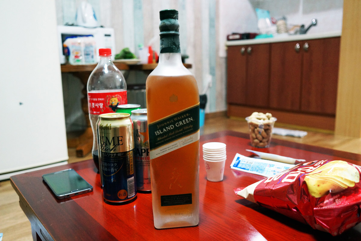 고기를 야무지게 먹고 2차는 공개사과님이 협찬해주신 그린라벨을 실내에서 즐깁니다.