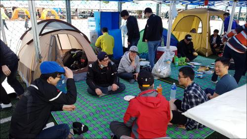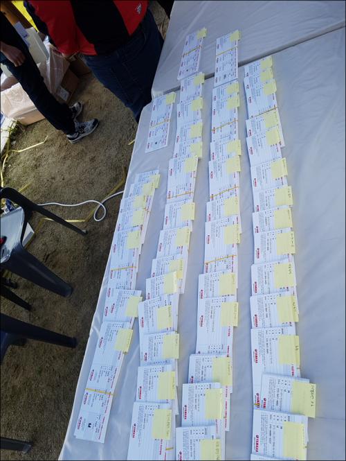 중간 사진은 없지만 도착해보니 이미 와셔 깔판 깔고 발전기 설치중이시던 야고님 외 2인 잠시 나도 짐풀어놓고 있다가 접수처가 아직 오픈 안한줄 알고 방식하고 있다 야고님의 호출에 부랴 부랴 가니 줄이 장난아니네요