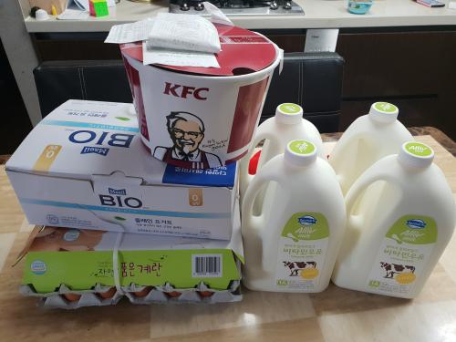달걀과 우유4개 요거트를 추가 배송요청하셨네요.