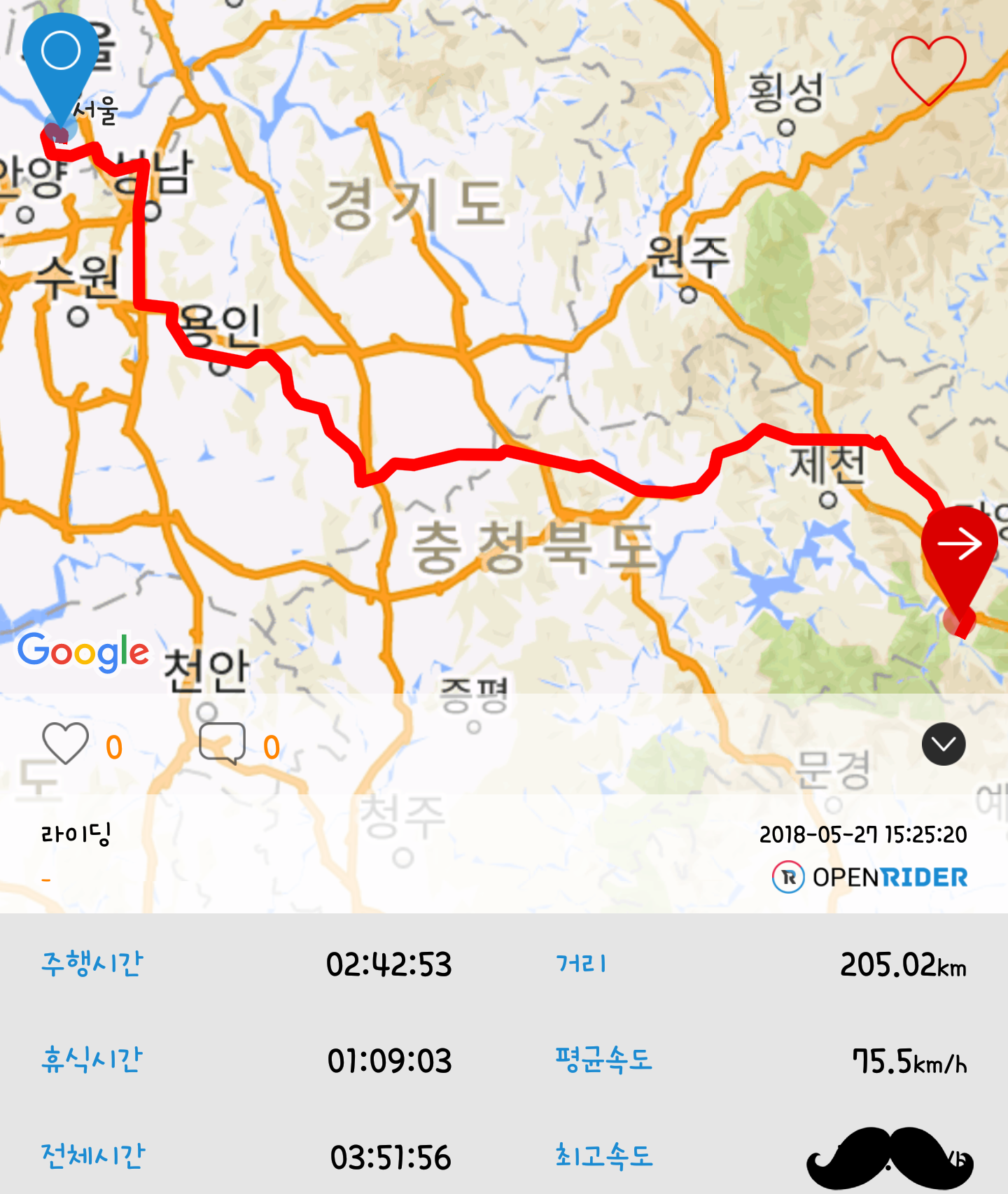 출발부터 도착까지 한방에 기록해야겠어요.