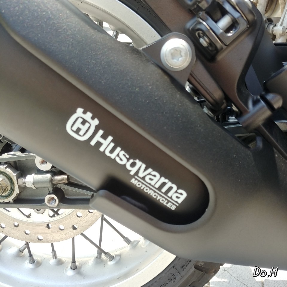 그리고 세차를 하려고 바이크를 빼다 발견했는데 머플러의 허스크바나 마크가 벗겨졌네요.