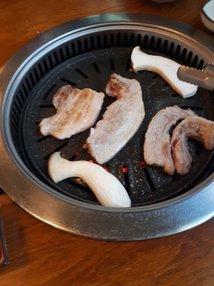 저는 삼겹살을 바짝~ 익혀서 좀 딱딱할 정도로 바삭하게 많이 익혀 먹는 스타일인데....이때쯤 갑자기 맛이 없을 찌도 모르겠다는 생각이 들었습니다 ㅋㅋㅋ