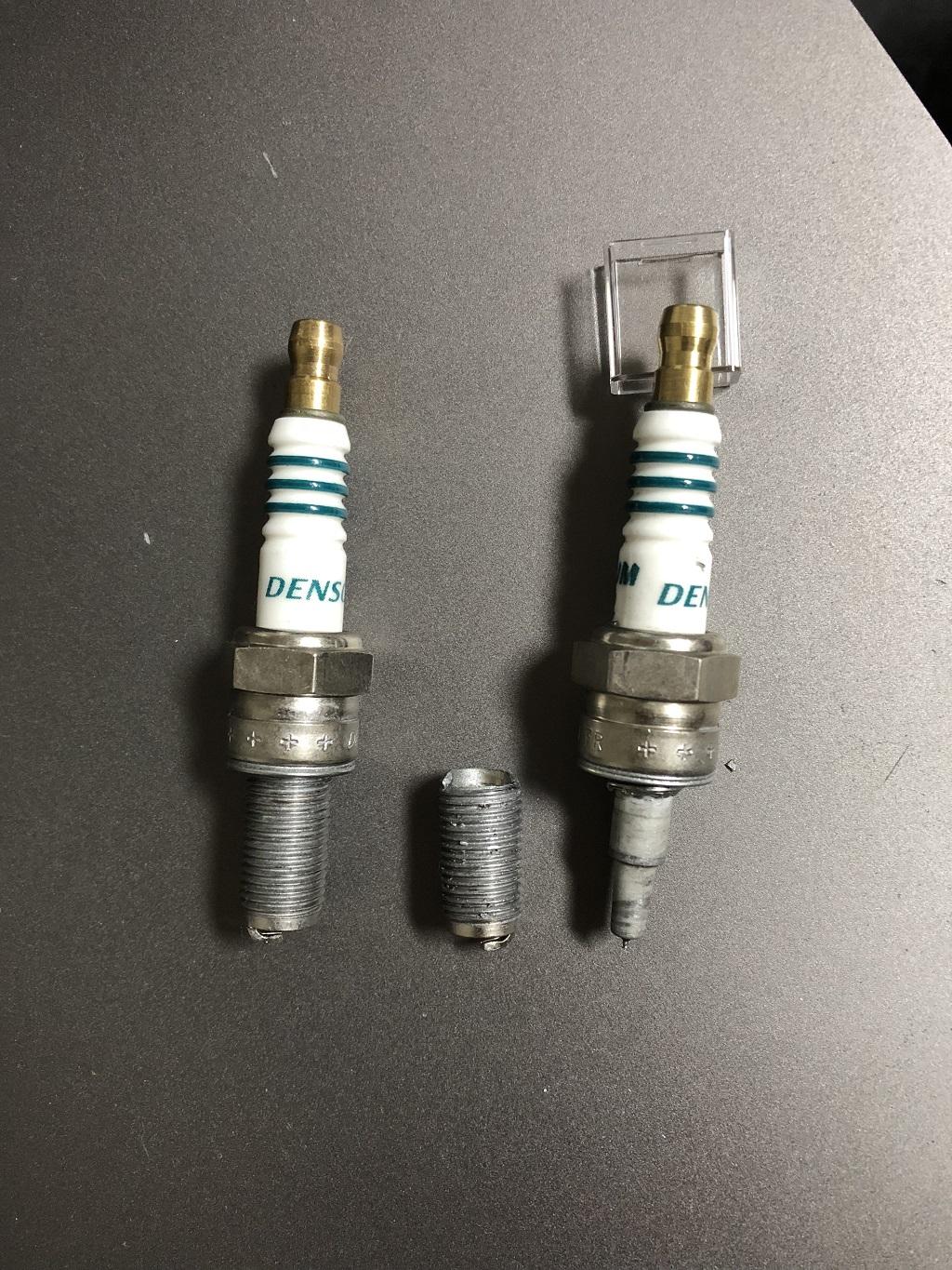 여지껏 수많은 자동차의 점화플러그를 교체해봤지만 아래사진처럼 점화플러그가 절단되는 것은 처음보았습니다.