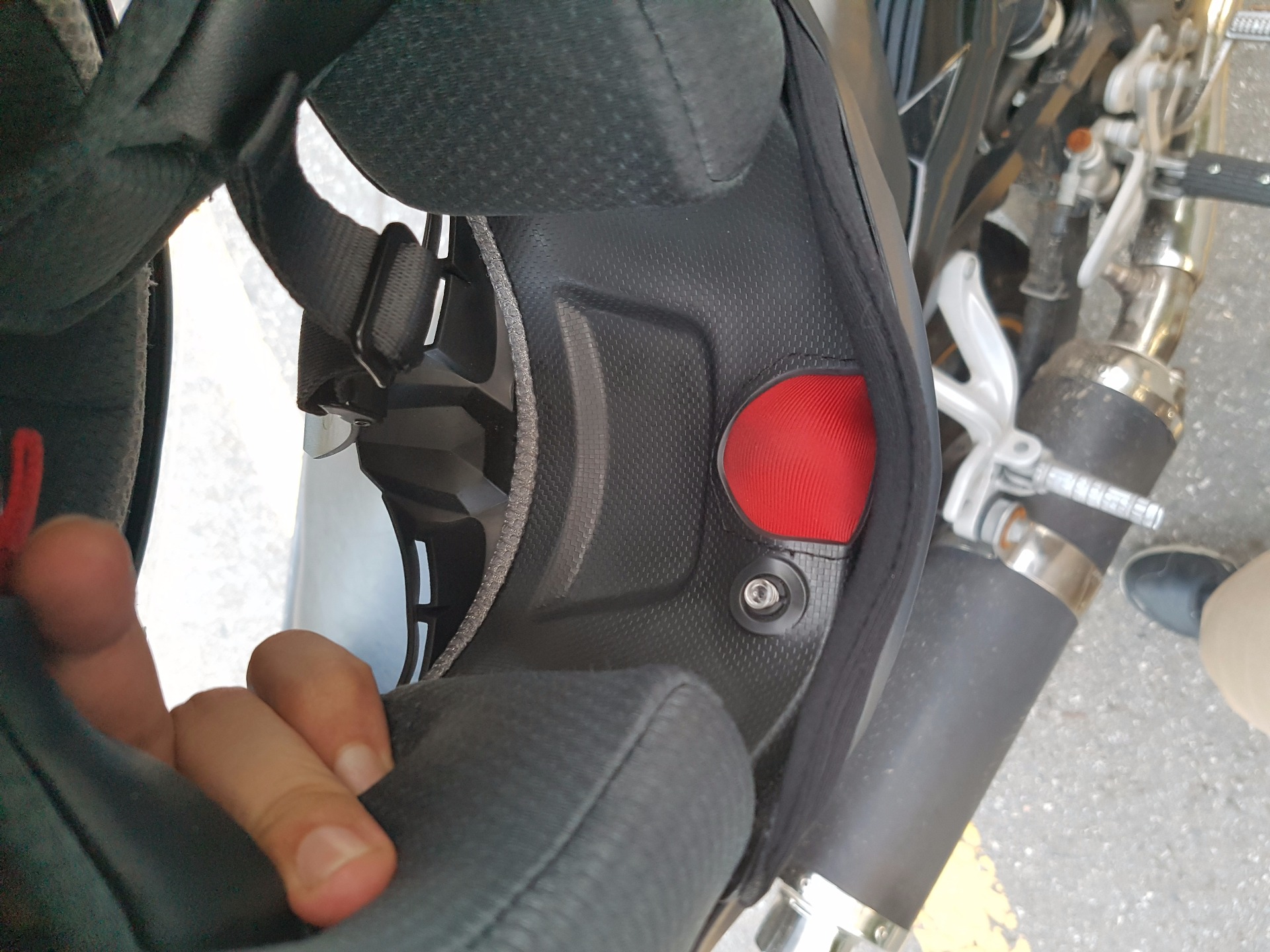 어떤 헬멧은 사고났을 때 헬멧을 안전하게 벗기기 위해 별도의 고리가 내장된 것도 있더라구요.