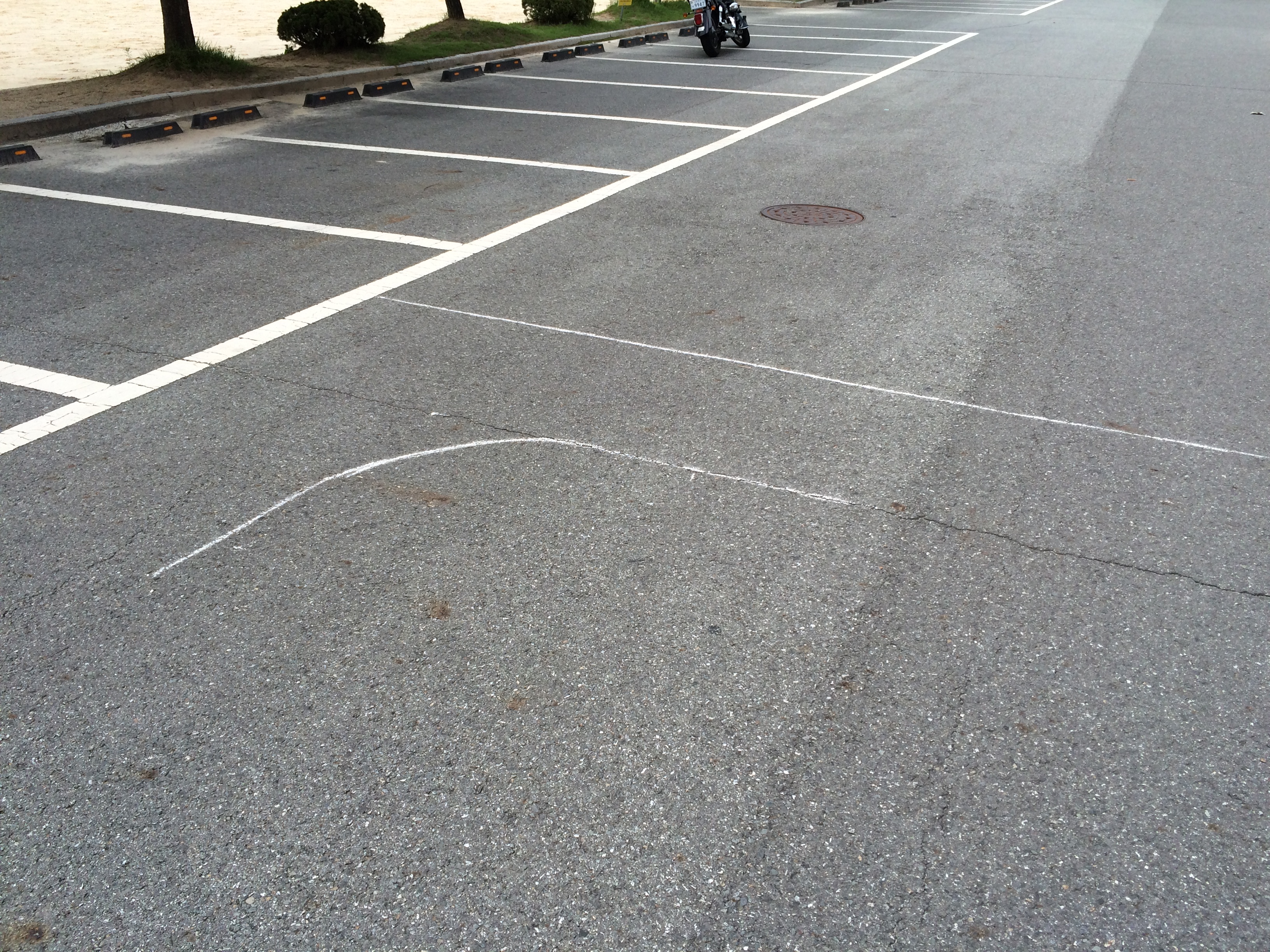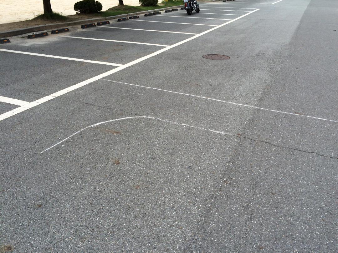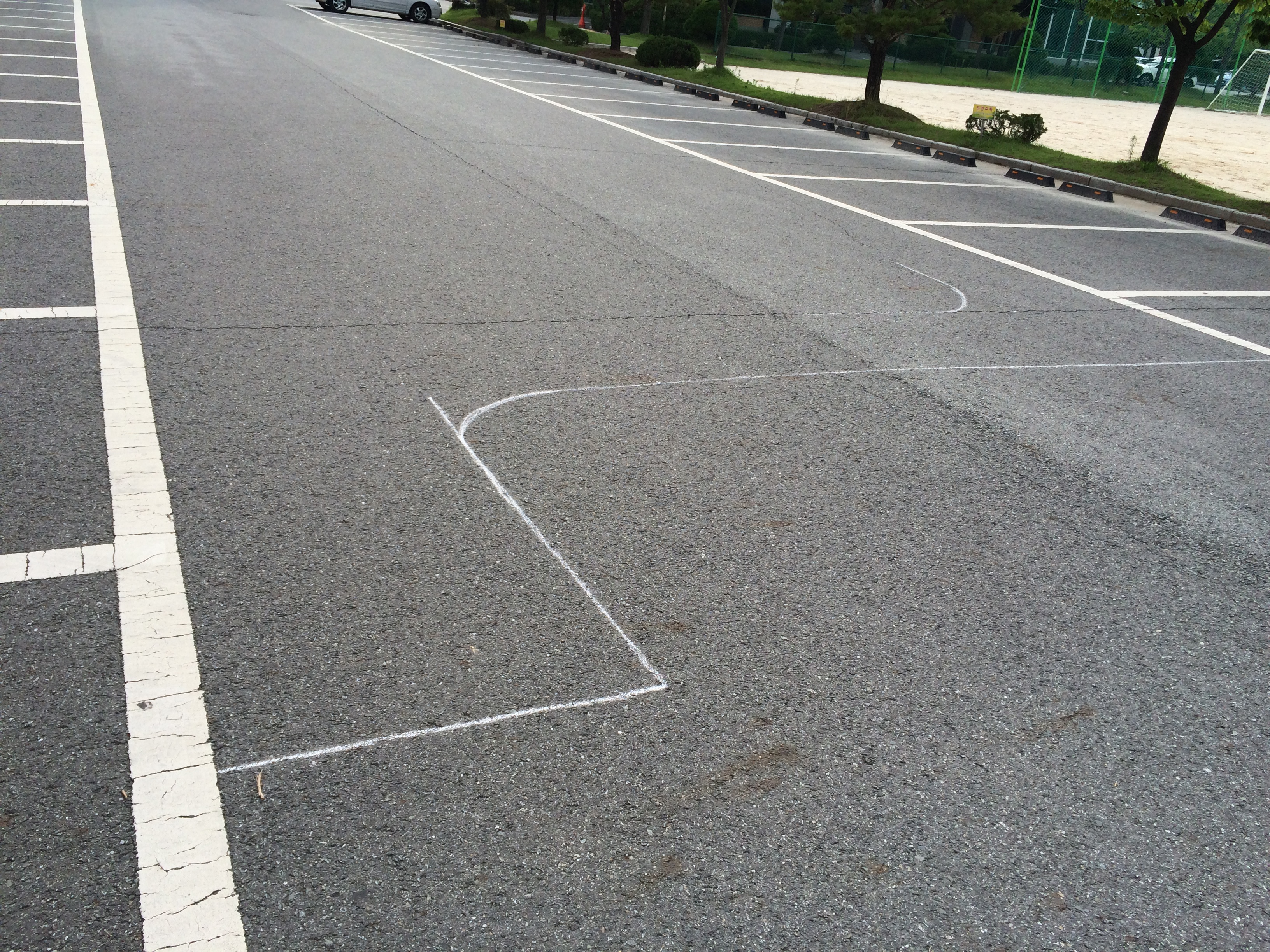 어제는 그냥 대충 주차라인보고 연습했는데, 오늘은 분필 하나 들고가서 코스규격대로 줄자사용해서 그리고 연습해봤습니다.