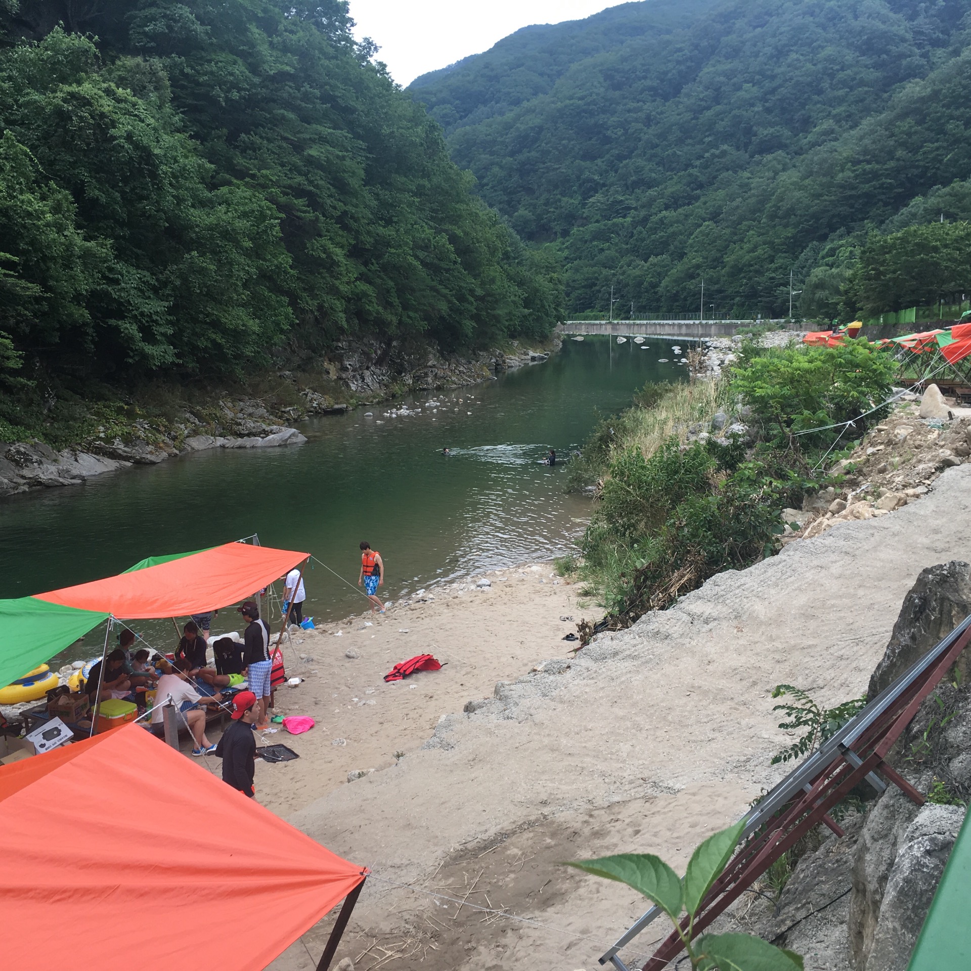 저 얕은 계곡물에 의자를 콱 박아두고 거기에 등기대고 앉아서